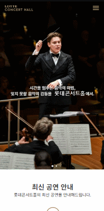 - 롯데 콘서트홀 웹사이트를 모바일 기기에 맞춰 새롭게 구현한 모바일 웹사이트